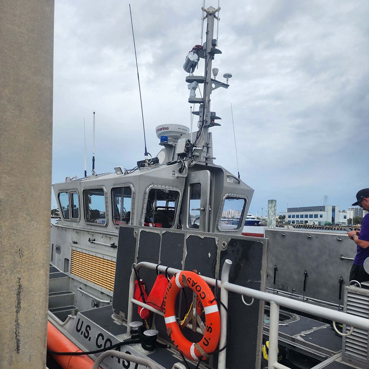 Welding on a US Coast Guard Vessel: We just finished up welding the tower on the Coast Guard vessel. We also welded up handrails that were broken. What a great bunch of guys! They helped us moving our equiptment around! We are truly honored.